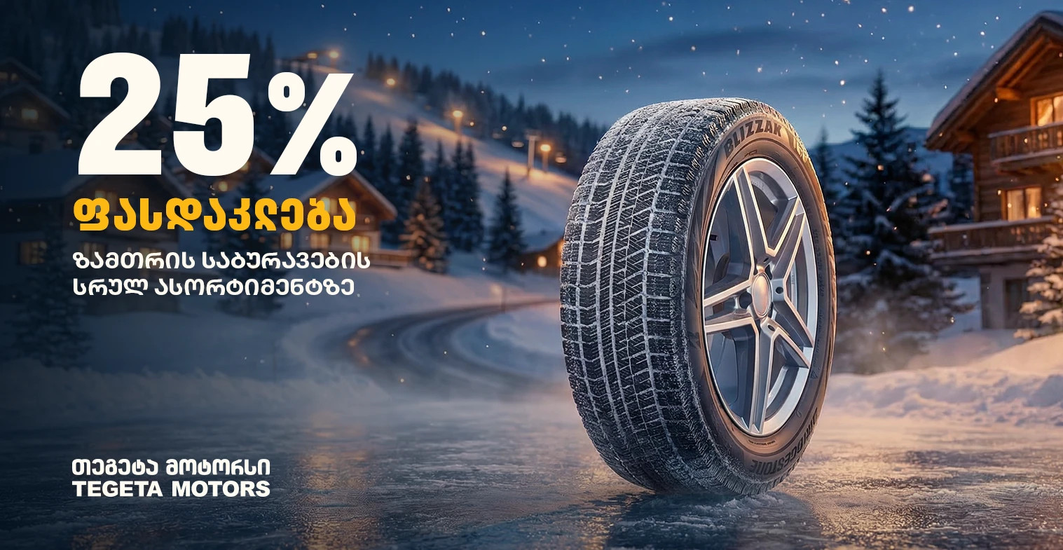„გადააგორე ზამთარი“ - შეცვალე საბურავი „თეგეტა მოტორსში“ და ისარგებლე 25%-იანი ფასდაკლებით