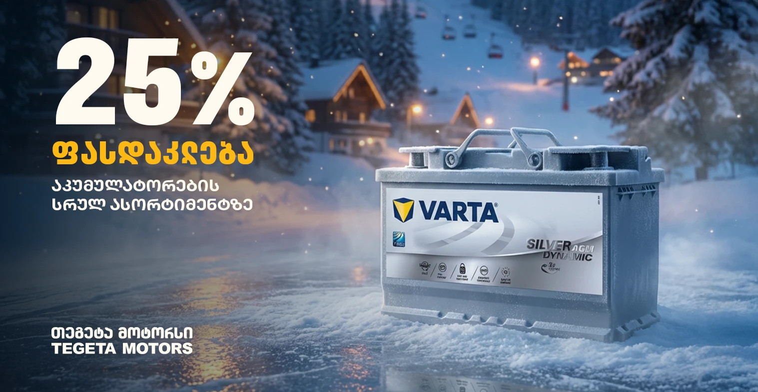 ჩვენს ფილიალებში წარმოდგენილია პროდუქციის ფართო არჩევანი, მათ შორისგერმანული ბრენდის Varta-ს აკუმულატორები, რომელიც ისეთ მნიშვნელოვან უპირატესობებს აერთიანებს, როგორებიცაა ხანგრძლივი სამუშაო რესურსი და გამძლეობა. მსოფლიოს ლიდერი საავტომობილო კომპანიები სწორედ Varta-ს აკუმულატორებს იყენებენ საკუთარი ავტომობილების წარმოებისას. „თეგეტა მოტორსში“ მომხმარებელს სხვა პრემიუმ ბრენდების აკუმულატორები და მაღალი ხარისხის ანტიფრიზებიც დახვდება, რაც ზამთრის სეზონზე ავტომობილის უსაფრთხო გადაადგილებისთვის მნიშვნელოვანია. ჩვენს ფილიალებში მოსულ მომხმარებელს კი მაღალკვალიფიციური სპეციალისტები დაეხმარებიან შესაბამისი პროდუქტის შერჩევაში“.