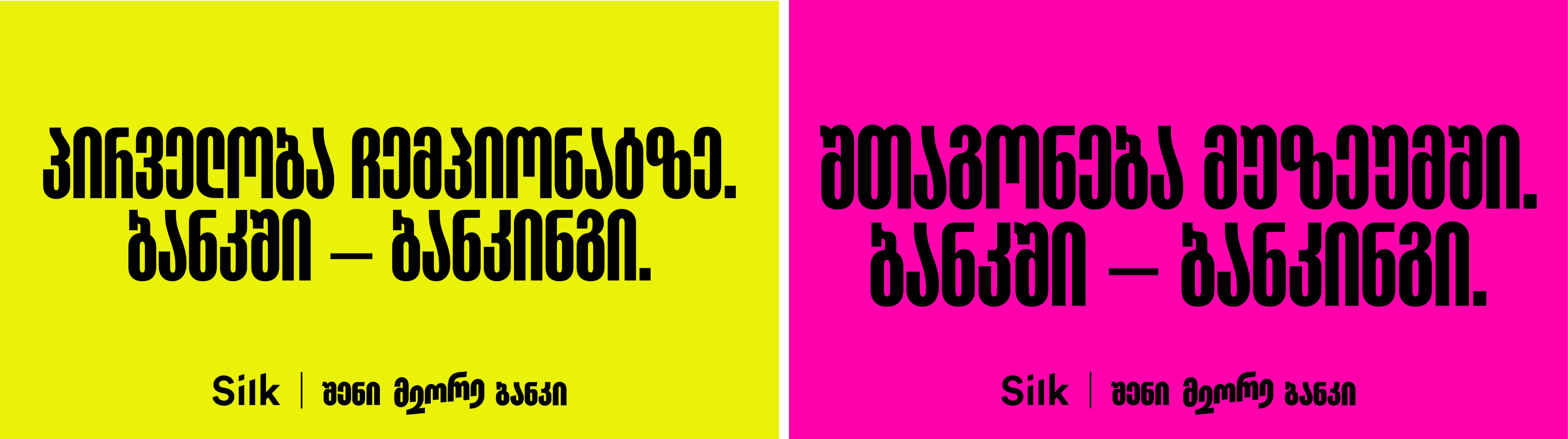 საინტერესოა, ასევე, კამპანიის პრინტსერია, რომელიც სოციალურ მედიაში და გარე ბანერებზე გაიშალა. ის კონტრასტი, რაც სილქ ბანკსა და კონკურენტებს შორისაა, ვფიქრობთ, კამპანიის დამატებით საკომუნიკაციო ელემენტებში კიდევ უფრო ნათლად გამოიხატა.