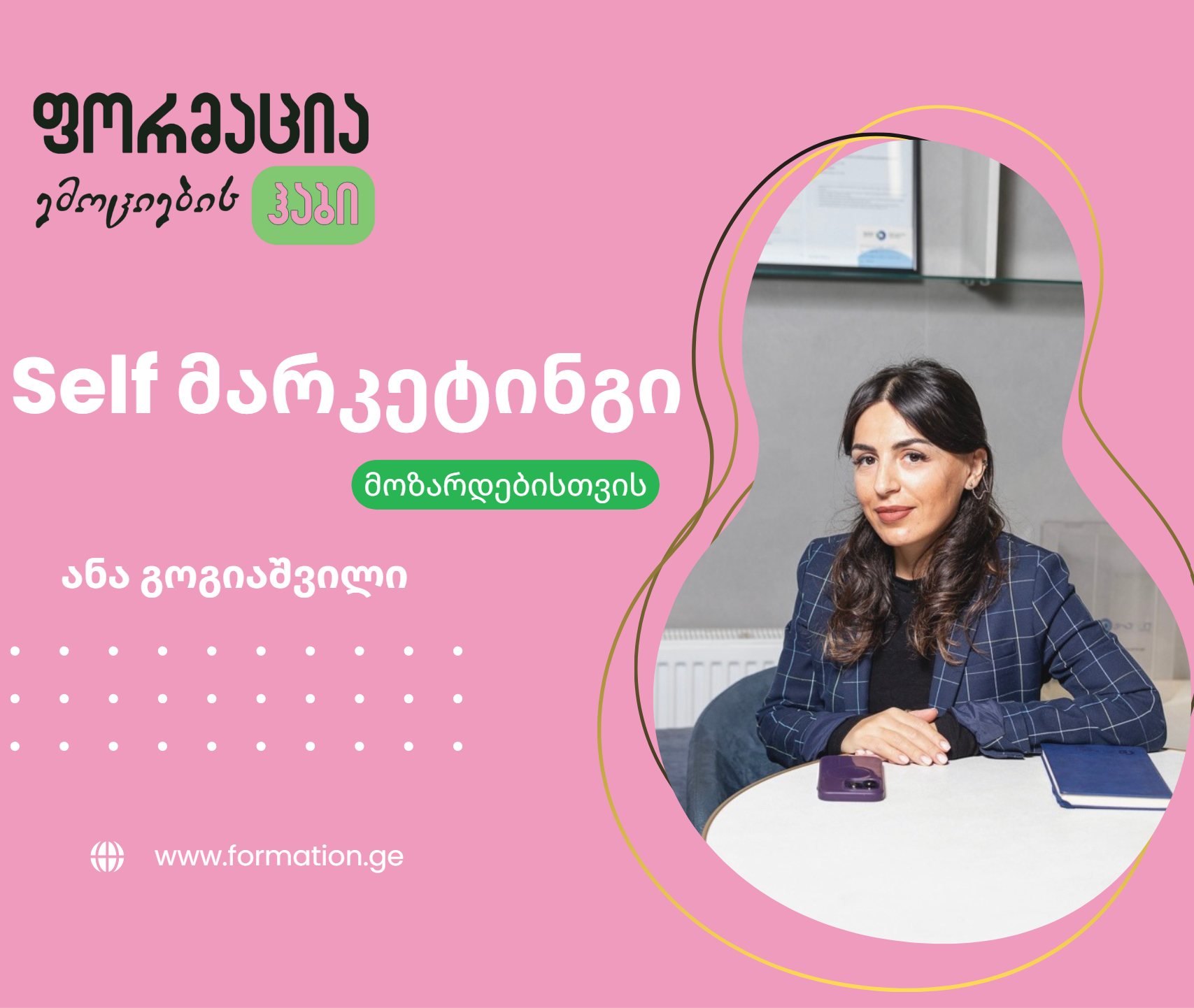 „ფორმაცია“ არის ადგილი, სადაც ხელოვნება და ფსიქოლოგია ერწყმის ერთმანეთს. ეს არის ჰაბი, სადაც მოზარდები და ზრდასრულები კვალიფიციურ გუნდთან ერთად, საინტერესო და ინოვაციური კურსების საშუალებით, ივითარებენ თვალსაწიერს. მეტი ინფორმაციისთვის Business Insider Georgia „ფორმაციის“ დამფუძნებელს, ირმა გოგოლაძეს ესაუბრა.