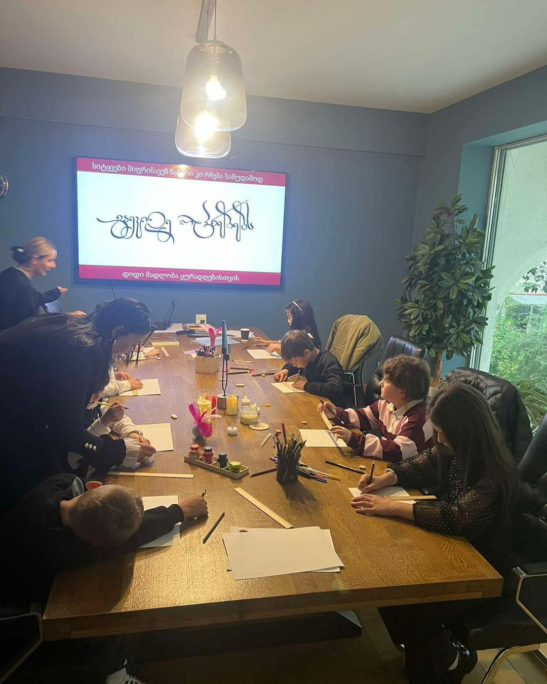 კალიგრაფია გვაქვს როგორც ერთჯერადად ვორქშოფის ფორმატში, ასევე სრული კურსის სახით. ვმუშაობთ ტურისტებზეც: ვაცნობთ მათ ქართულ კალიგრაფიას, ვარჩევთ ფრაზას, რომელსაც მონაწილეები თავად წერენ, ამას ვურთავთ ღვინოსა და მუსიკას, რაც ქმნის სასიამოვნო და დასამახსოვრებელ საღამოს.