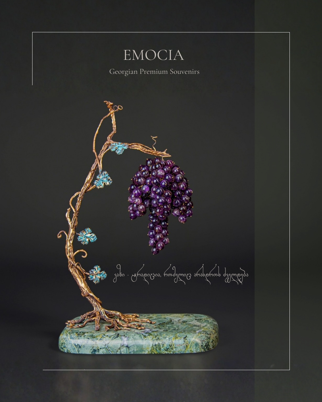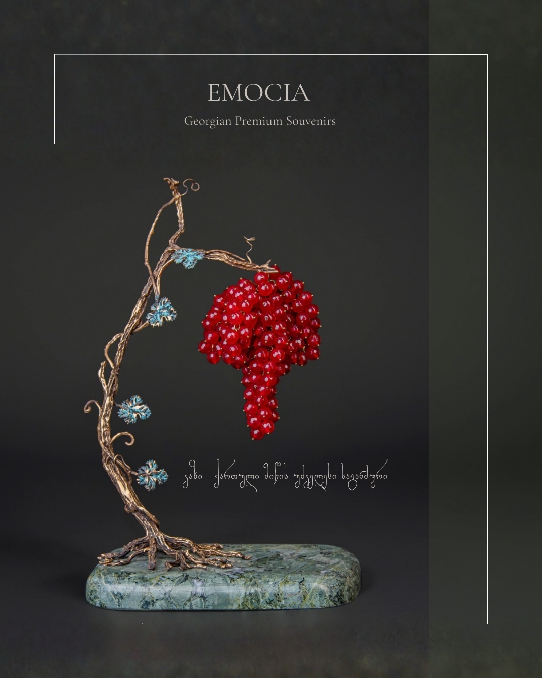 „ღვინის ემოცია“ ქართული ბრენდია, რომელიც 2020 წელს დაარსდა. ბრენდი ქმნის სუვენირებსა და სამკაულს საქართველოსა და ვაზის თემატიკით. კომპანიას აქვს გამორჩეული, საავტორო ხელწერა, რომელის იდეა გაჩნდა მაშინ, როდესაც ქართულ ბაზარზე არ არსებობდა პრემიალური სუვენირები ამ მიმართულებით. ამჟამად, ღვინის ემოცია ცნობილია, როგორც პრემიალური ქართული საჩუქრების ბრენდი. კომპანია იყენებს ბრინჯაოს, მარმარილოს და უმაღლესი ხარისხის ნატურალურ ქვებს. თითოეული მოდელი ხელნაკეთია და შექმნილია საავტორო დიზაინით.