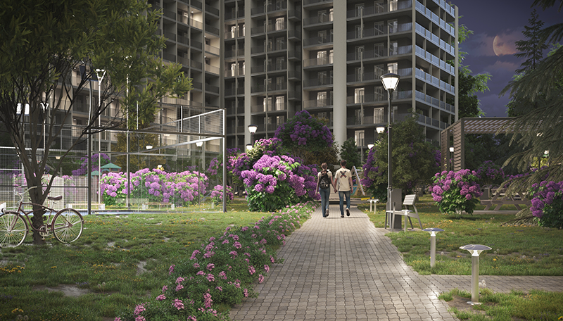 პროექტის კიდევ ერთი უპირატესობა თავად საცხოვრებელი კომპლექსის გარემოა. მობინადრეებს აქ 15,000 კვ.მ. გამწვანებული შიდა ეზო და იასამნების ბაღი დახვდებათ, რაც ქალაქის აქტიურ რიტმში საცხოვრებლად საუკეთესო, მშვიდ გარემოს ქმნის. კომპლექსი ასევე მოიცავს სპორტულ მოედნებს, სამეზობლო ლაუნჯს, სავარჯიშო დარბაზსა და სხვა მნიშვნელოვან ინფრასტრუქტურულ ელემენტებს.