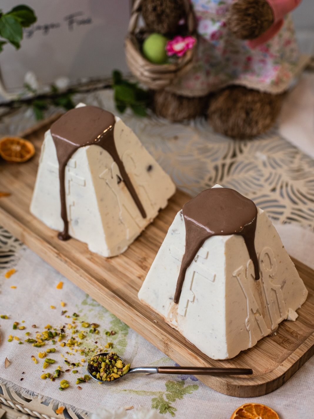• ხაჭოს პასკა სტევიაზე, უშაქრო შოკოლადითა და ფისტით.